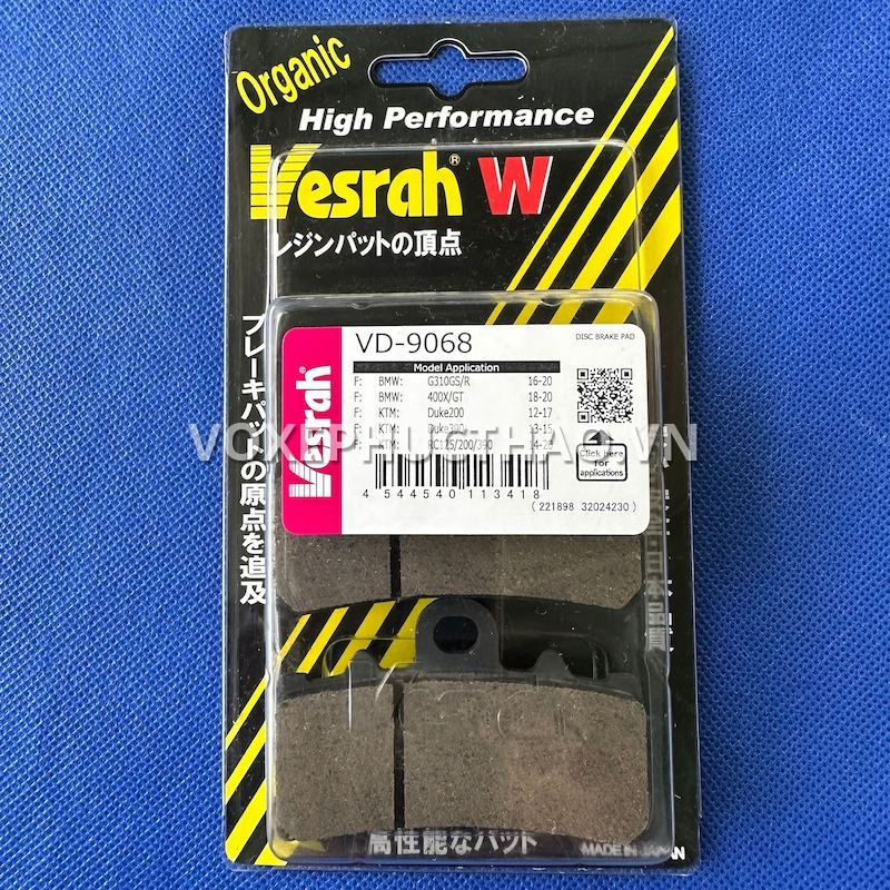 - Bố thắng Resin của Vesrah được sản xuất dựa trên thông số kỹ thuật của bố thắng OEM nhằm mang lại sự tương thích tối đa.
