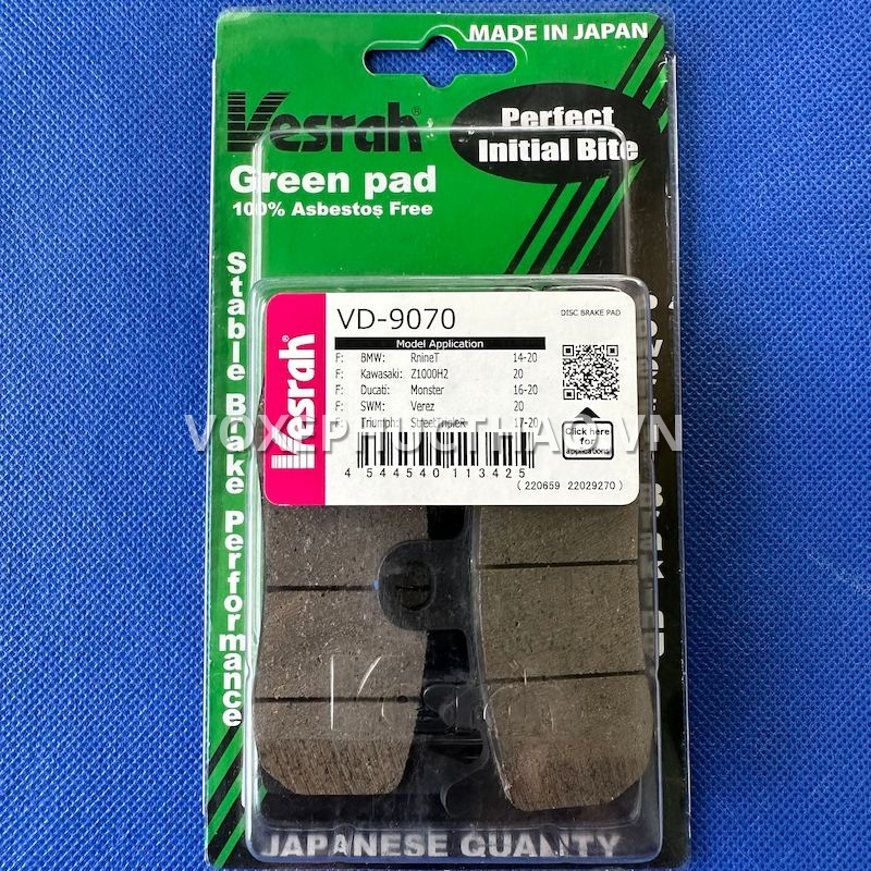 - Không như các dòng bố thắng thị trường khác cần thời gian mài mòn đều, bố thắng Vesrah đem lại cảm giác thắng tốt nhất ngay sau khi lắp đặt.