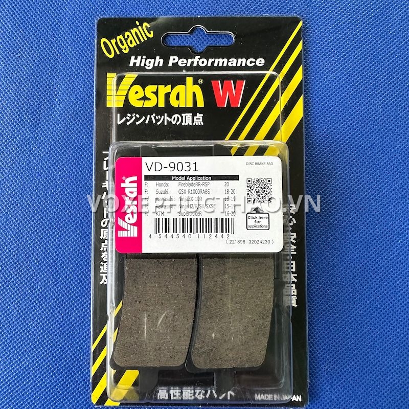 - Không như các dòng bố thắng thị trường khác cần thời gian mài mòn đều, bố thắng Vesrah đem lại cảm giác thắng tốt nhất ngay sau khi lắp đặt.